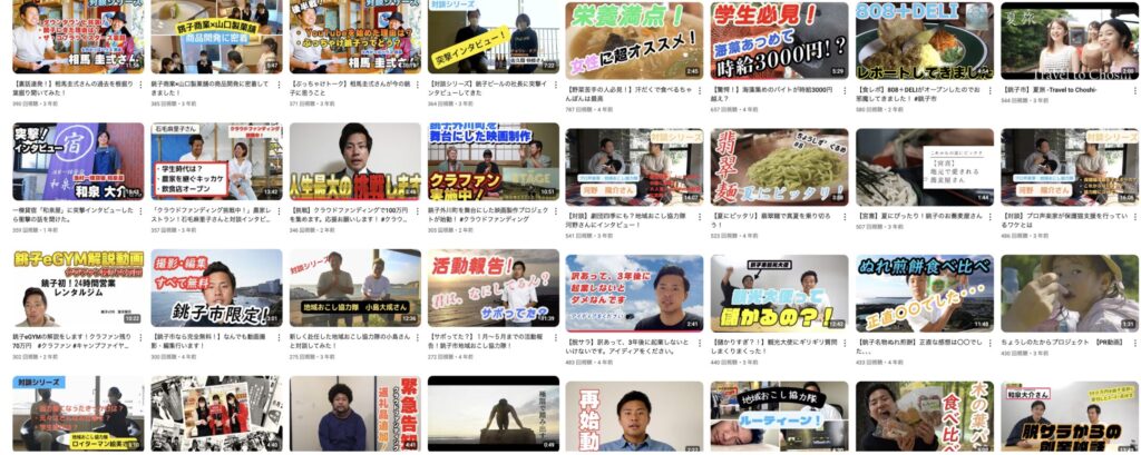 地域の人に顔を覚えてもらうため、そして銚子の魅力を発信するためにYouTubeチャンネルを立ち上げました。これが想像以上に効果的で、地域認知度が上がり、信頼関係の構築にもつながりました。協力隊卒業後は更新を停止しましたが、蓄積したノウハウと登録者を次世代に引き継ぎたいと思っています。